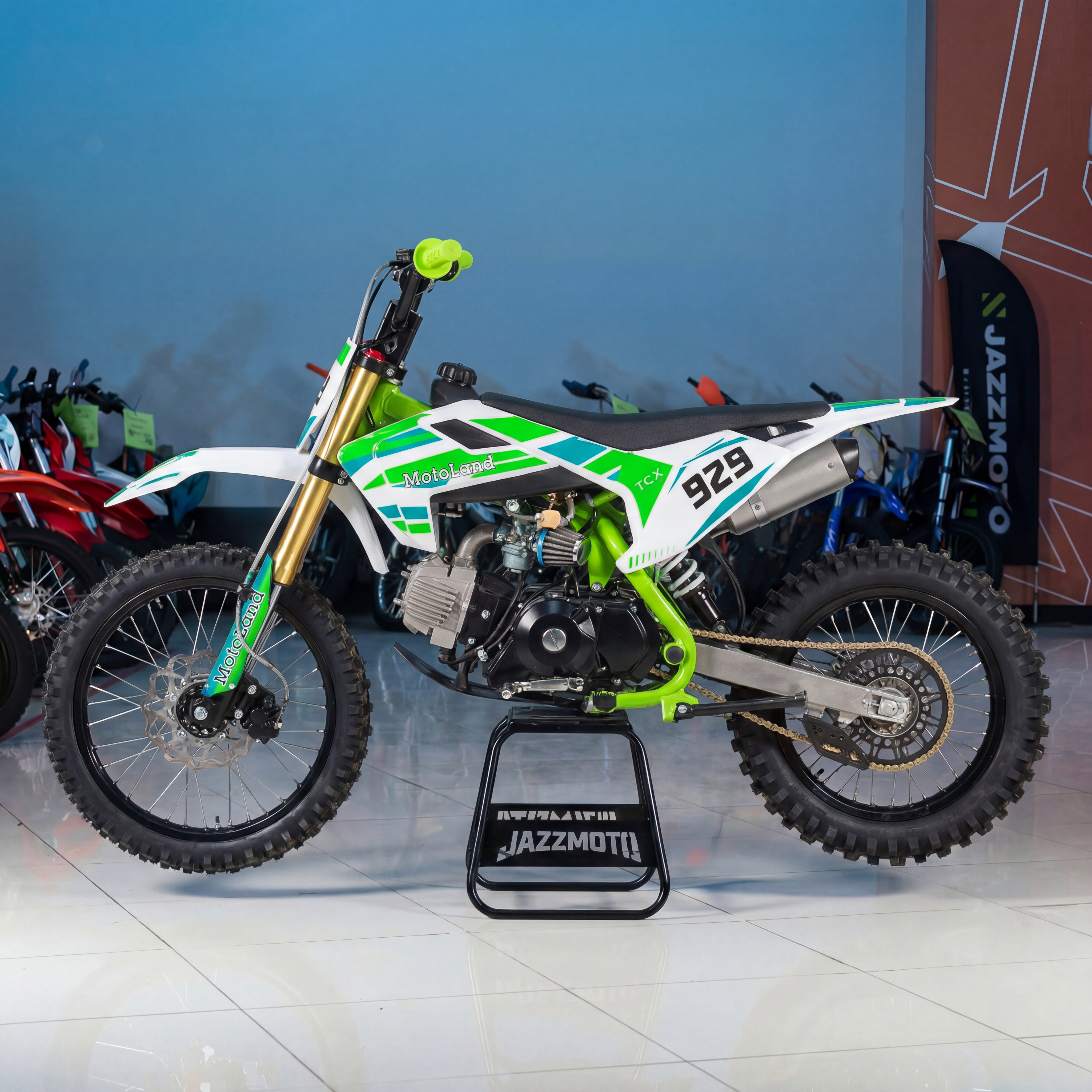 Питбайк Motoland TCX125 14/12 — недорогая модель для поездок по грунтовым дорогам и бездорожью, которая хорошо чувствует себя на мягком и среднем грунте. Питбайк разгоняется до 90 км/ч, весит всего 70 кг, прост в управлении и не требует специального ухода. Эта модель подойдёт как новичкам, так и любителям мотокросса, а узнаваемый дизайн и неуступчивый спортивный характер делают её особенно привлекательной для тех, кто ценит практичность, надёжность и яркий внешний вид.