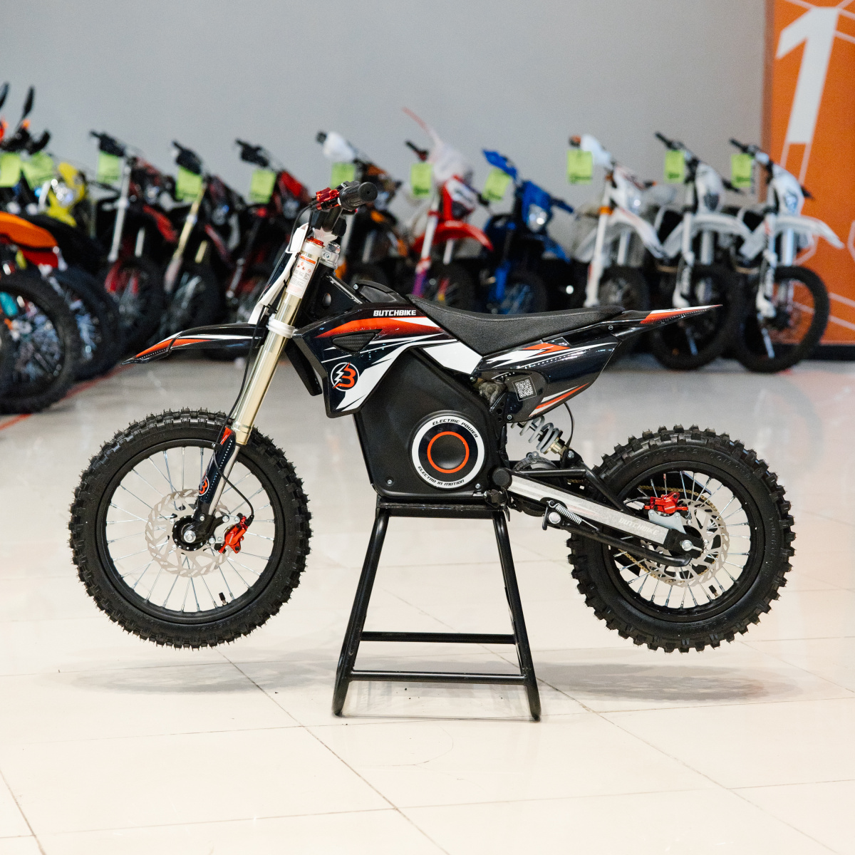 Питбайк BUTCH X2 оборудован коллекторным мотором 2000W, плавный и мощный момент с самых низов. Батарея съемная 48v 15AH Li ION, пробег составляет около 30 км. Приблизительно около 90 минут активного катания. При желании можно докупить вторую батарею и быстро поменять прямо во время катания. С зарядкой проблем не будет, можете заряжать, не снимая или снимать батарею и ставить на зарядку дома. Максимальная скорость 45 км/ч, благодаря компьютеру можно настроить плавность трогания и ограничить скорость. Подойдет как детям, так и подросткам. Допустимая нагрузка 50 кг, можно изменить жесткость и повысить нагрузку до 75 кг. Колеса на кроссовой резине 14/12. Приезжайте к нам в магазин и убедитесь во всем лично. У нас есть кредит и рассрочка и огромный выбор техники на любой вкус и кошелек.