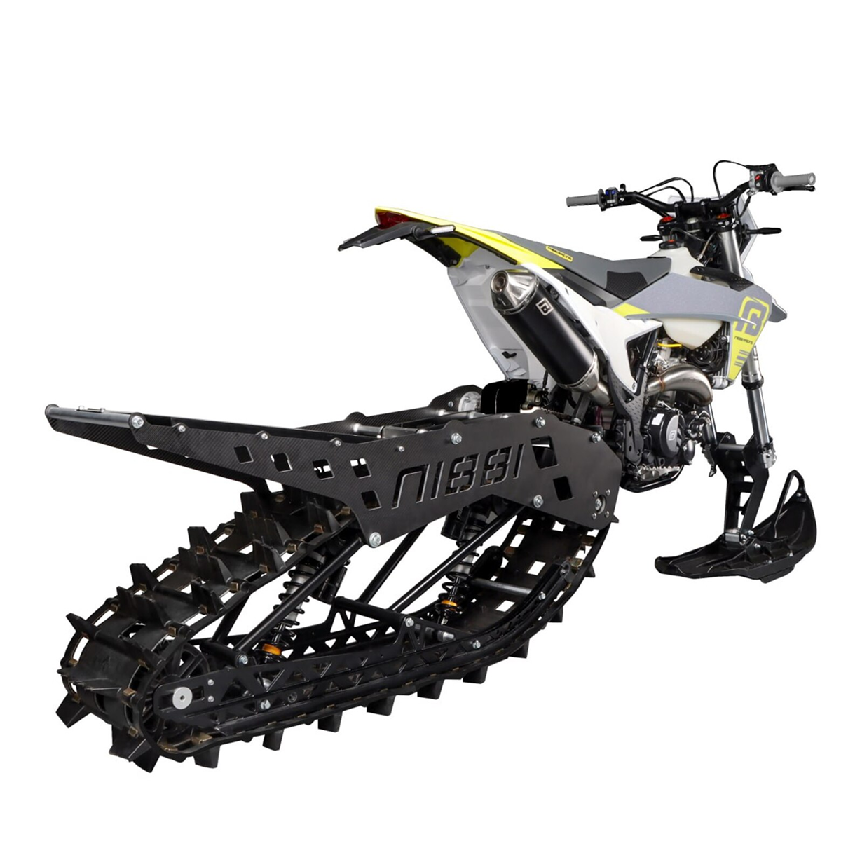 Вместо переднего колеса устанавливается лыжа, а заднее заменяется на гусеничный модуль — и ваш мотоцикл готов покорять заснеженные трассы, глубокий пухляк и ледяные склоны.