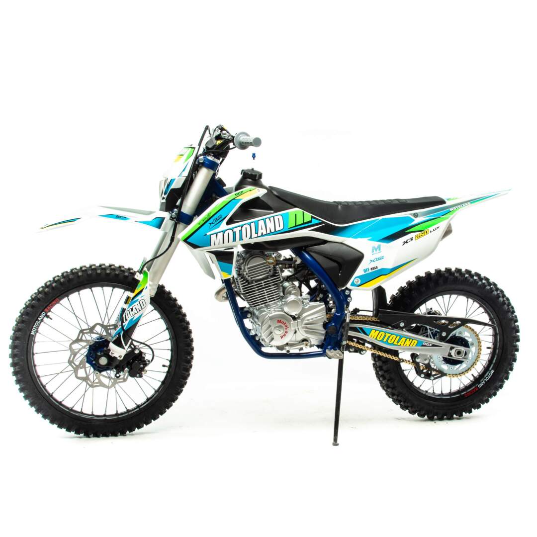Мотоцикл MotoLand  X3 250 LUX предназначен для езды по бездорожью и соревнований по мотокроссу. Имеет хорошую проходимость, прекрасно ведёт себя на песке и грунте, подходит для асфальтовых дорог. Оснащён двигателем 172FMM-3A мощностью 21 л.с. ,и карбюратором NIBBI PE 30.