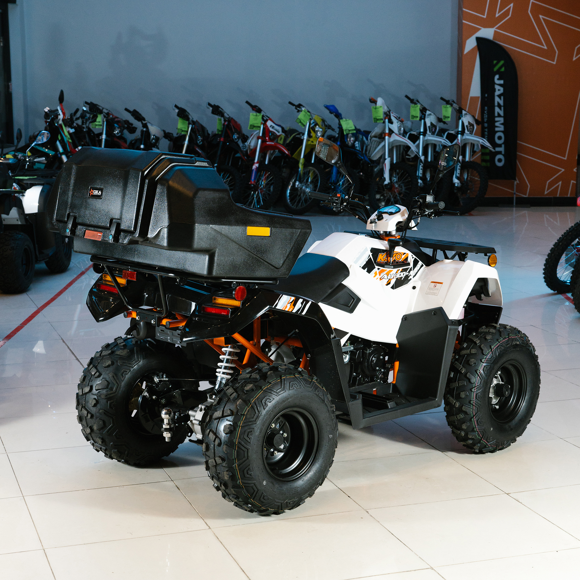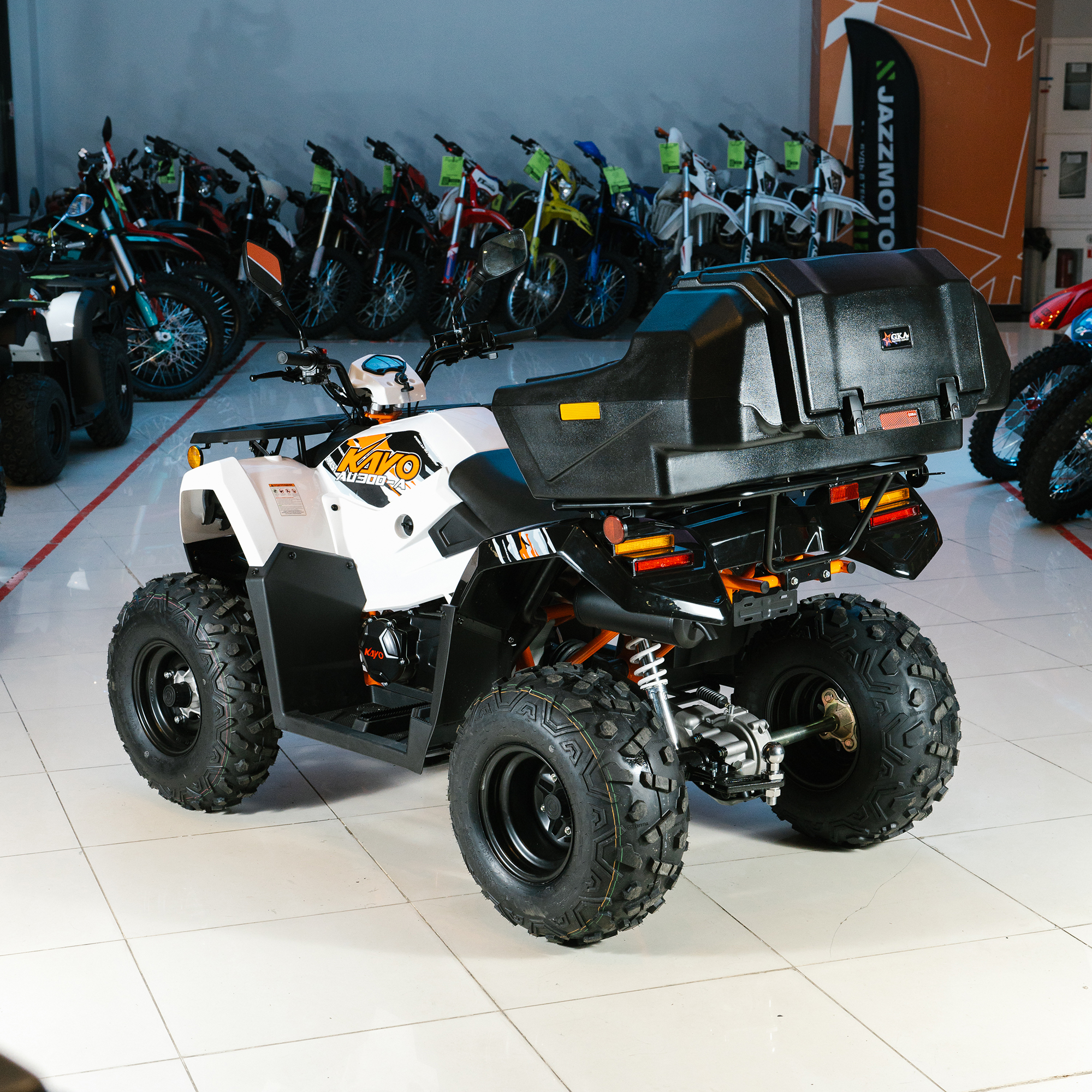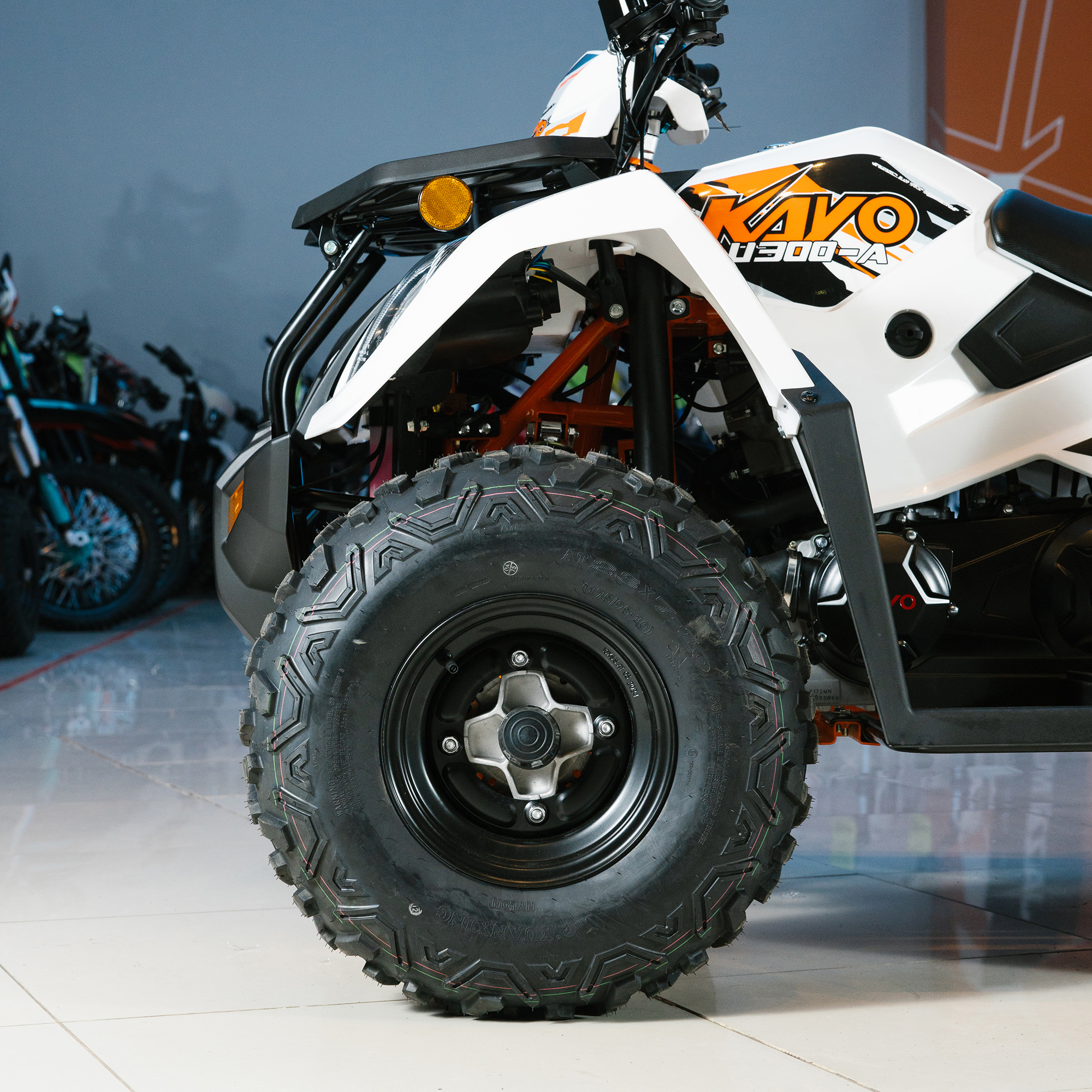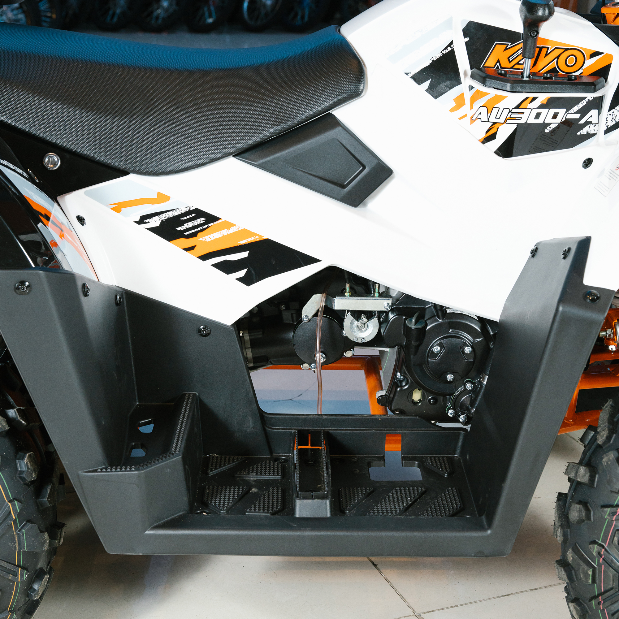 Обновлённая модель стала больше, мощнее, вместительнее и комфортнее при езде по пересечённой местности. Квадрицикл оснащён двигателем нового поколения — LXCVT300 жидкостного охлаждения объёмом 271 см3 с вертикальным расположением цилиндра, который выдаёт впечатляющие 23 л.с. На сегодняшний день AU300 Carb – это самый мощный утилитарный квадрицикл в модельном ряду компании KAYO.