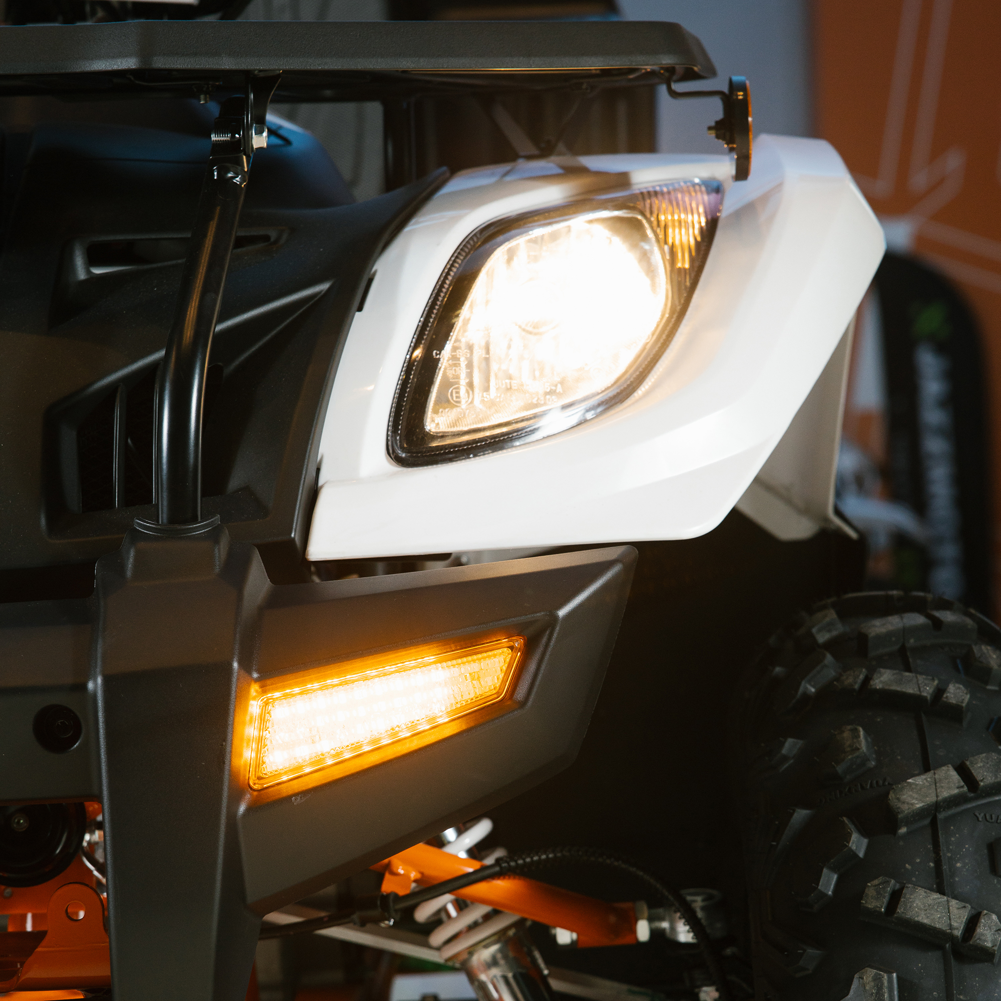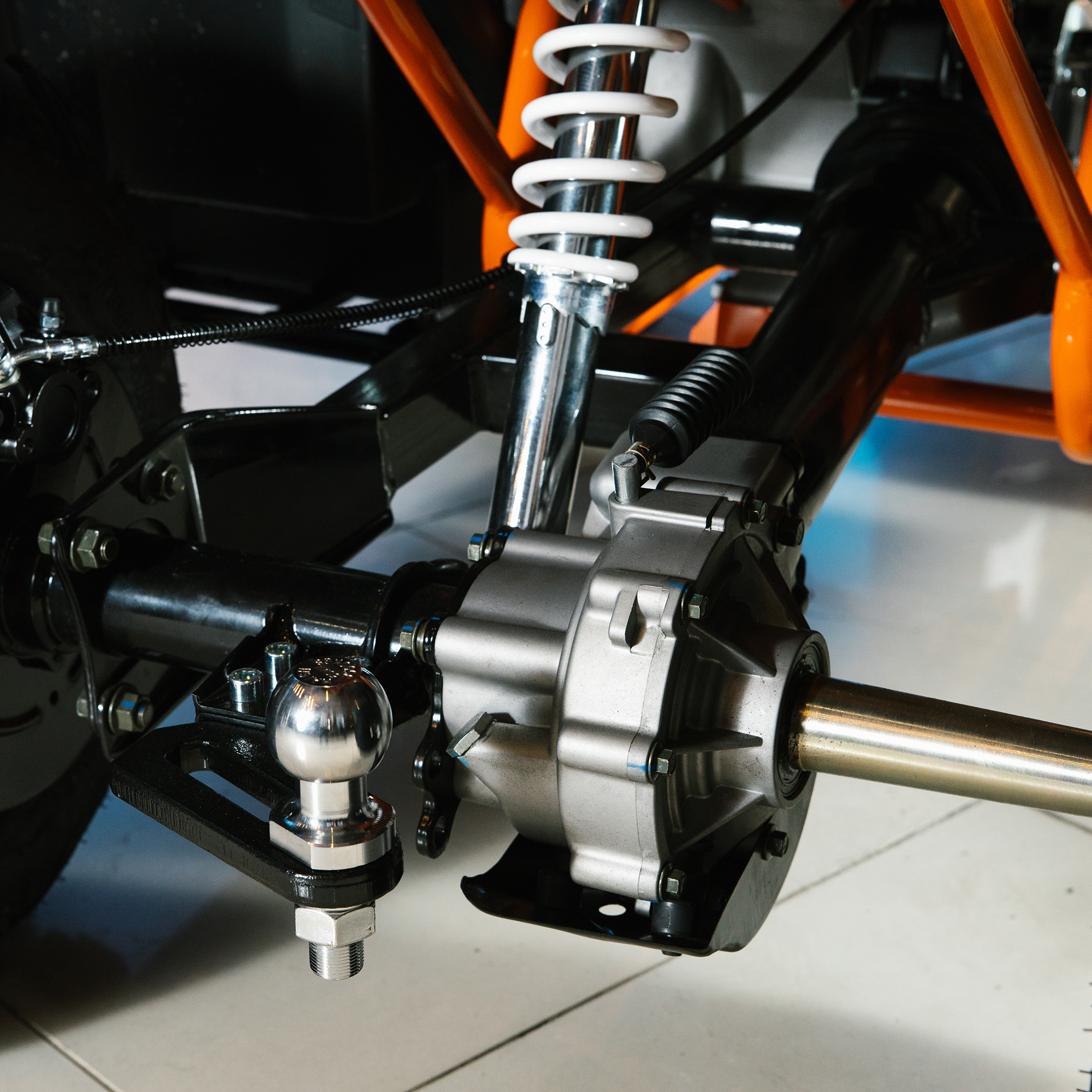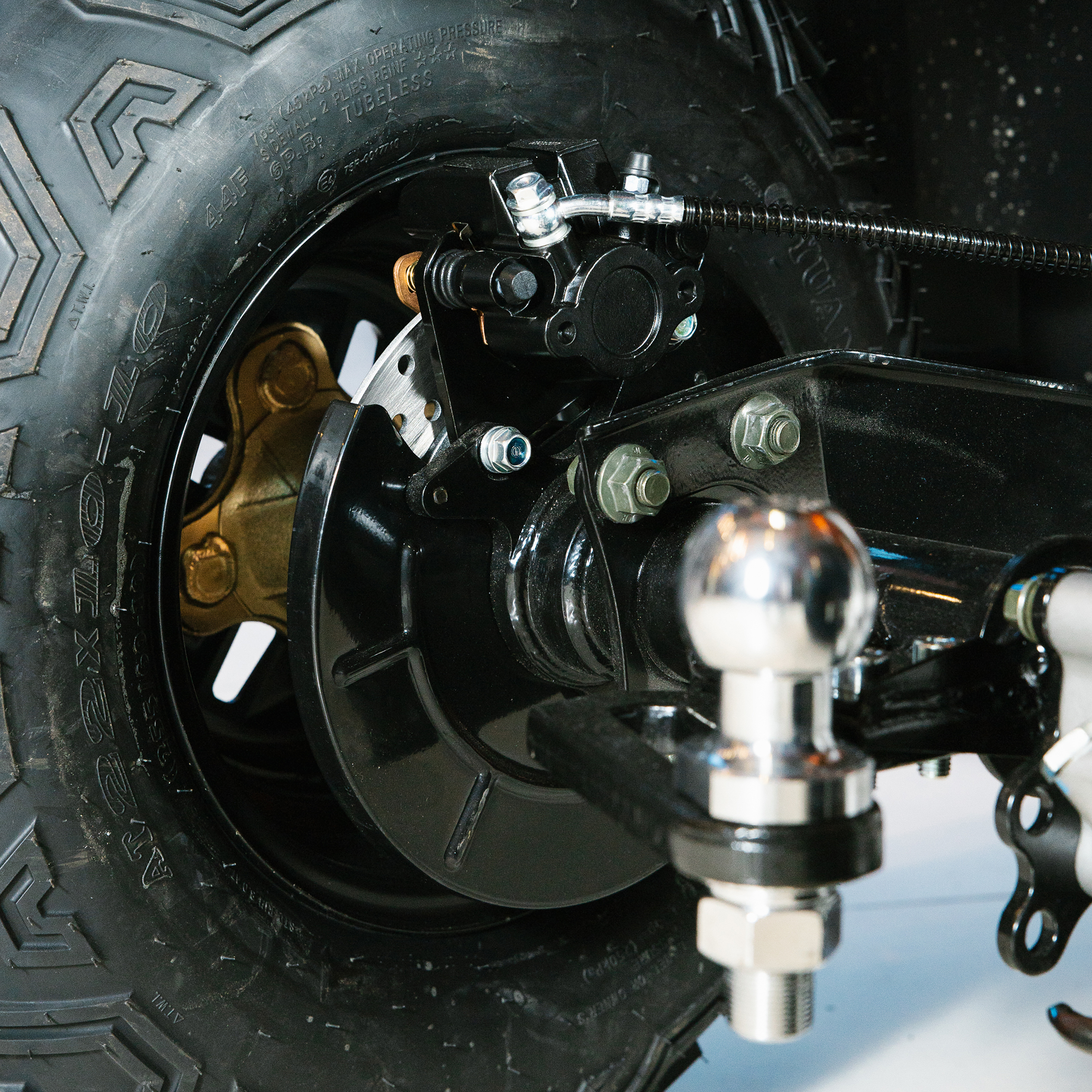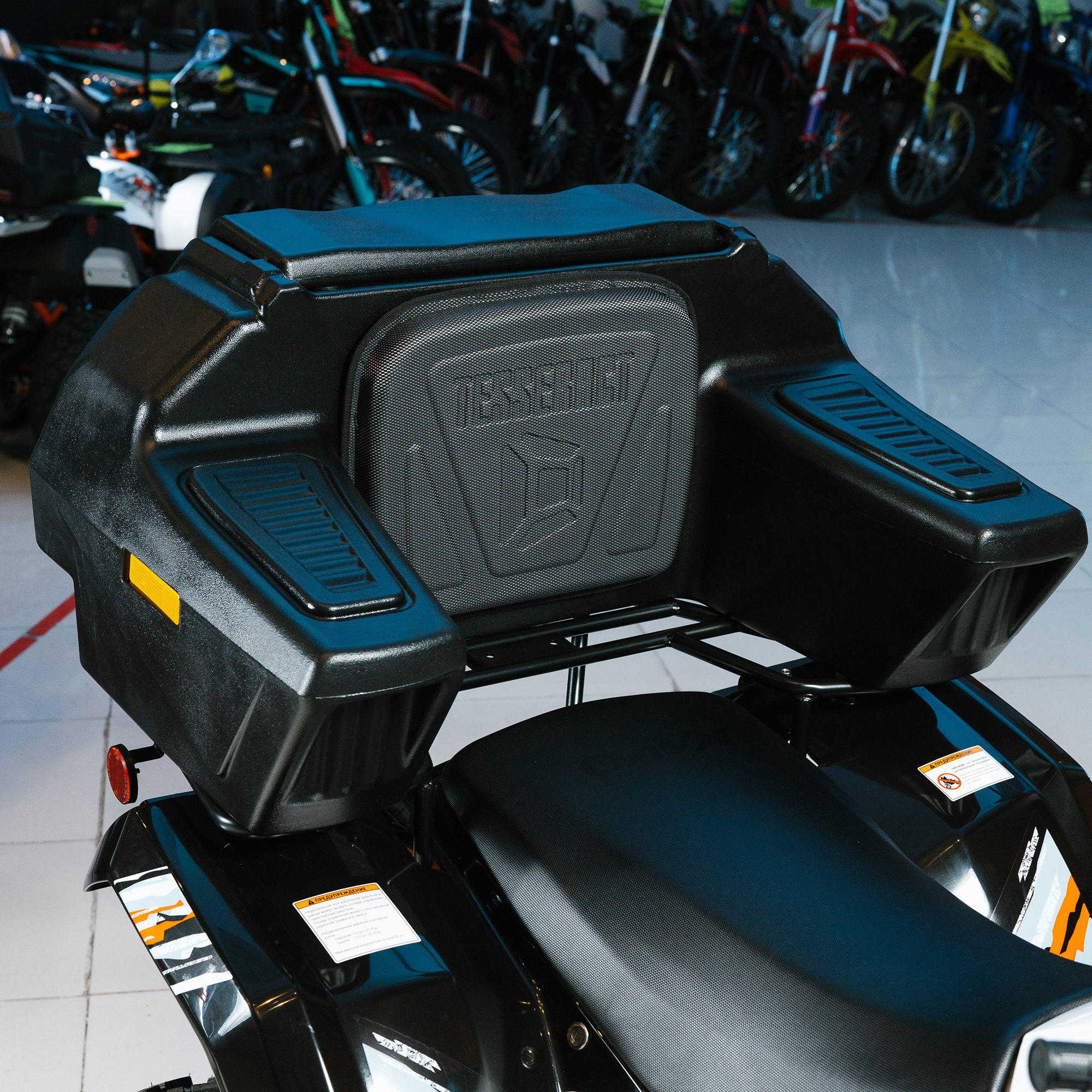 На квадрицикле имеются передний и задний багажники, а также установлен фаркоп с розеткой для подключения прицепа. Благодаря наличию ПТС квадрицикл можно поставить на учёт, чтобы ездить по дорогам общего пользования.