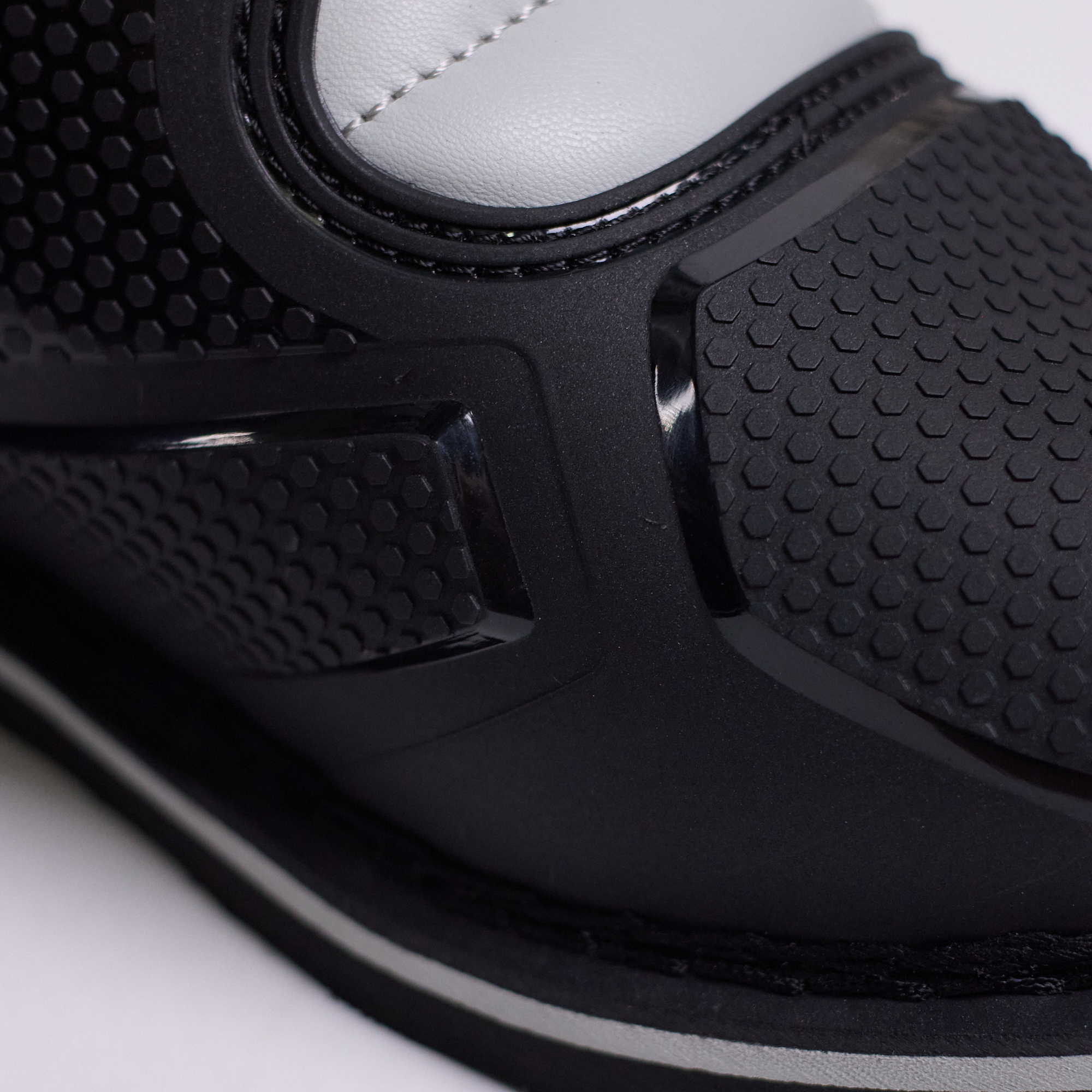 Мотоботы для эндуро и мотокросса обладают функциями, такими как: малый вес, улучшенная защита голеностопа и щиколотки, максимально продуманная эргономика. Модель уже заслужила доверие у спортсменов. Особенность конструкции позволяет сохранить естественную подвижность ноги, обеспечивая защиту от ударов и нежелательных перегрузок при приземлениях. Передняя защитная пластина на голенище выполнена из прочного термопластика. Удобная, гидрофобная подкладка адаптируется к особенностям ноги и обеспечивает максимальный комфорт.