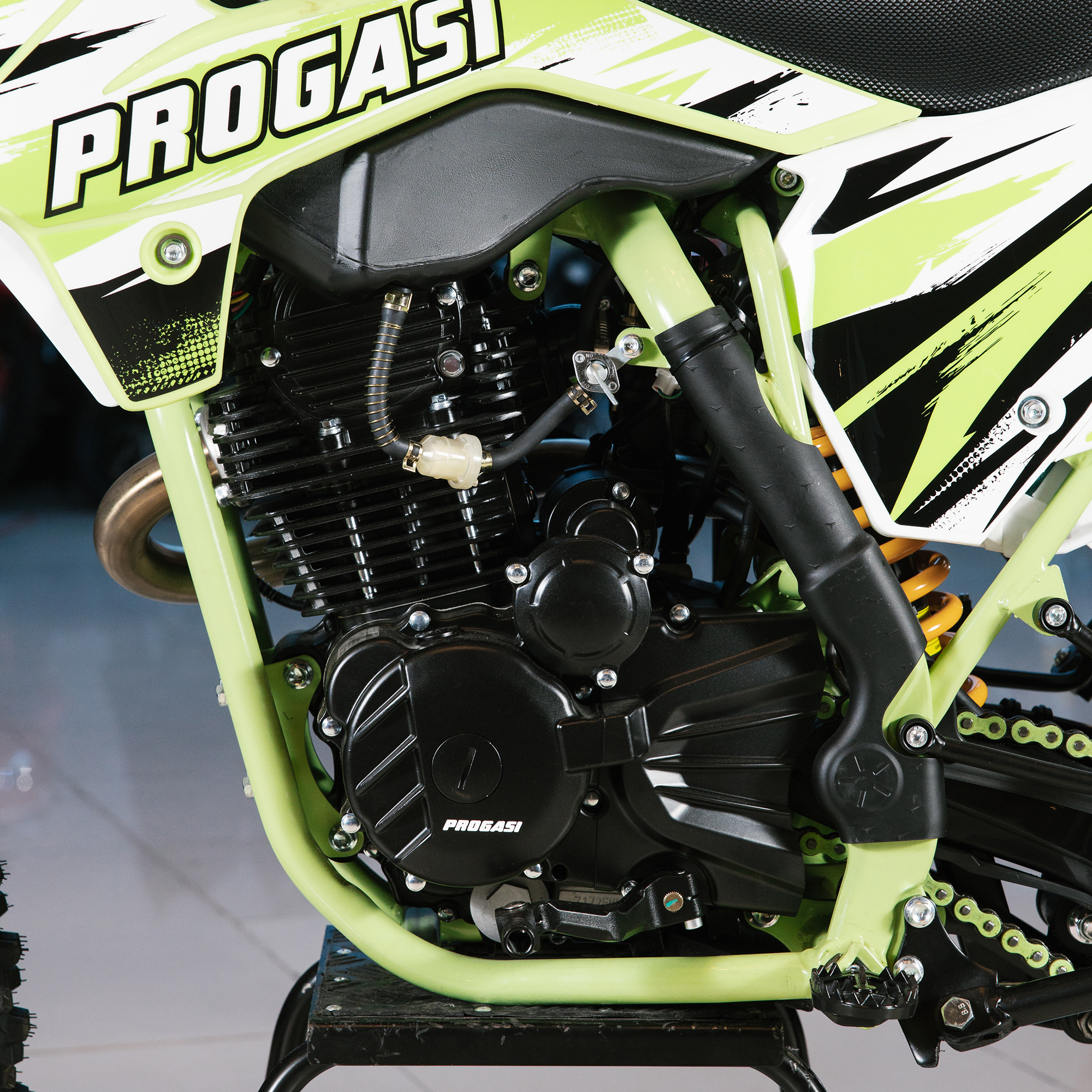 PROGASI SUPER MAX 250 Green White изготовлен из высококачественных материалов, что обеспечивает его надежность и долговечность. Компоненты мотоцикла прошли тщательное тестирование, чтобы гарантировать его надежную работу в течение продолжительного времени.