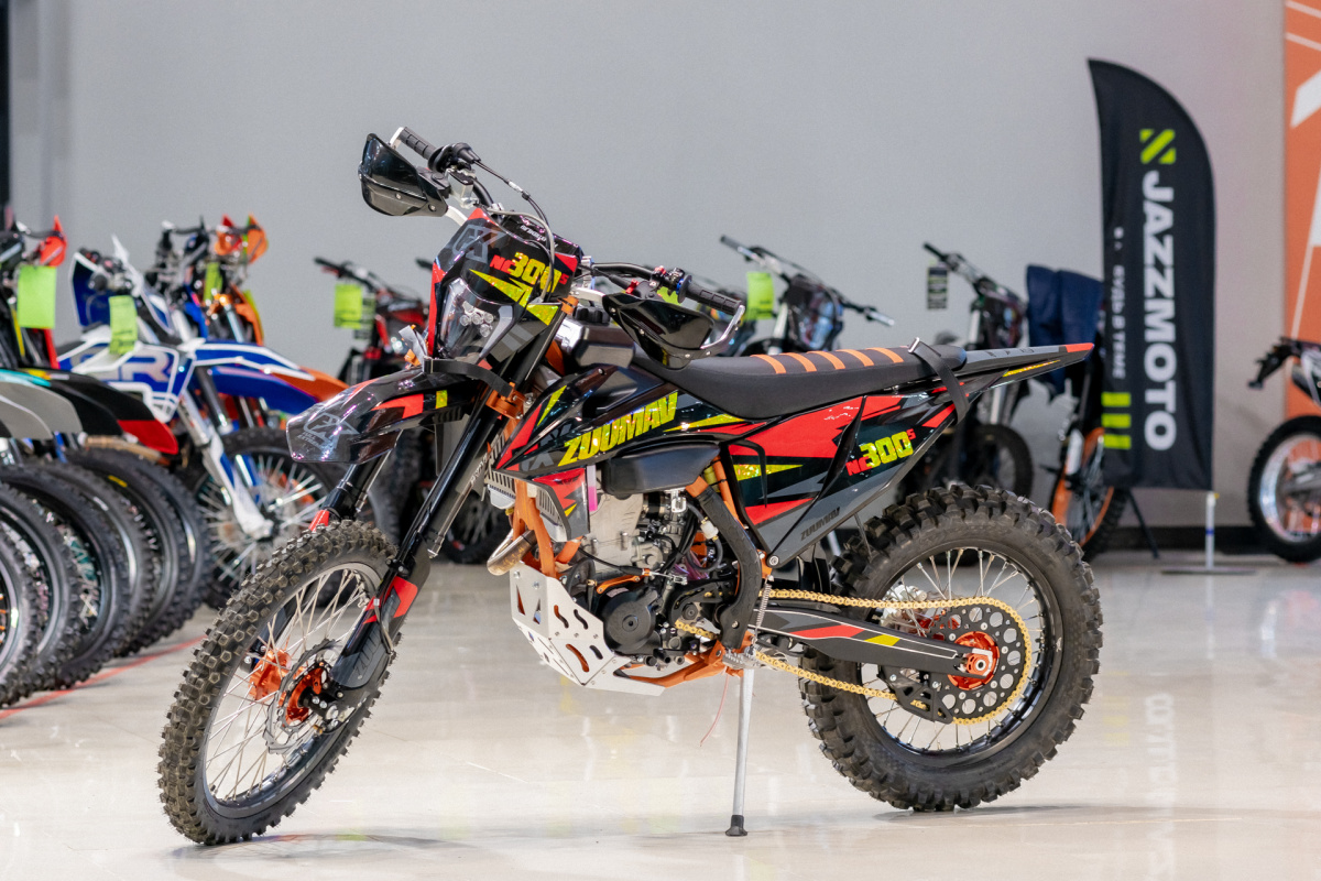 Модель ZUUMAV К8 NС300. Хром-Молибденовая рама повышенной прочности,Алюминиевый маятник,Двигатель Zongshen 4Т,177MМ-5, заявленная мощность 36 л.с. Коробка 6-МКПП,водяное охлаждение с  вентилятором (PANASONIC), защита радиаторов, легкий выжим сцепления AJ1®,электро и кикстартер, Трехпозиционный ключ зажигания,Цифровой дисплей + счетчик моточасов,Алюминиевый руль 28/22 сплав 7075, Короткоходная ручка газа СNC,Армированная защита рук,Складные рычаги тормоза и сцепления IGP CNC ,Обода Алюминий 7116 , Ступицы анодированные CNC,Спицы из нержавеющей стали 4 мм, траверсы CNC, передняя вилка полностью регулируемая KKE 54*60- 940мм шток 48мм, задний амортизатор полностью регулируемый ККЕ с Алминиевой прогрессией, антискользящие сиденье. Белый увеличенный топливный бак емкостью 10 литров. Карбюратор NIBBI RACING  PWK34 Black. Звезды перед/зад 13/52. Цепь SFR 520. Шины перед/зад 80х100-21, 110х100-18 KENDA off-road. Выхлопная система с резонатором из нержавеющей стали. Глушитель копия FMF. Буксаторы AJ1® облегченные композитные. Диодная фара с ходовыми огнями, щиток номера. Комплект жиклеров карбюратора, алюминиевая защита двигателя. Защита рамы, подшипники Тайвань.