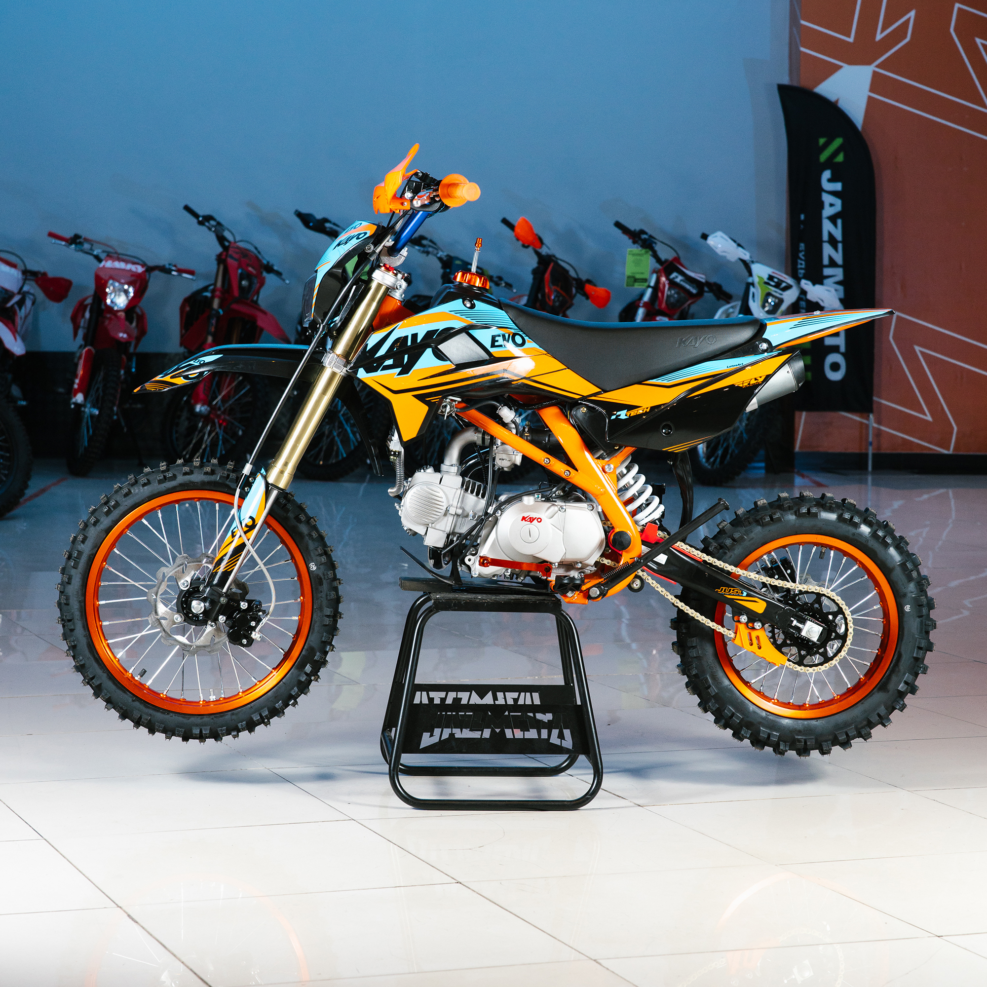 Питбайк KAYO EVOLUTION YX140EM 2022 - это отличное сочетание надежности, мощности и стиля. Широкие возможности кастомизации позволят вам добавить индивидуальность своему питбайку и сделать его по-настоящему уникальным.
