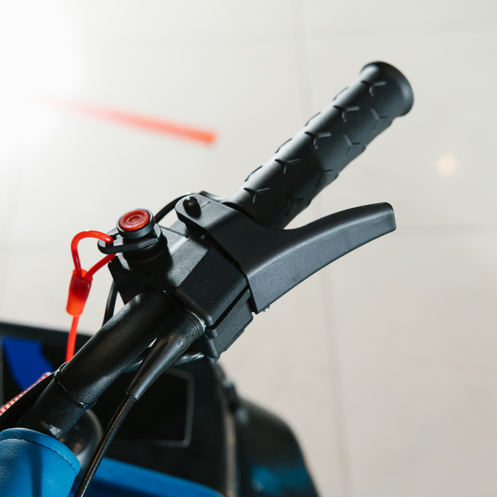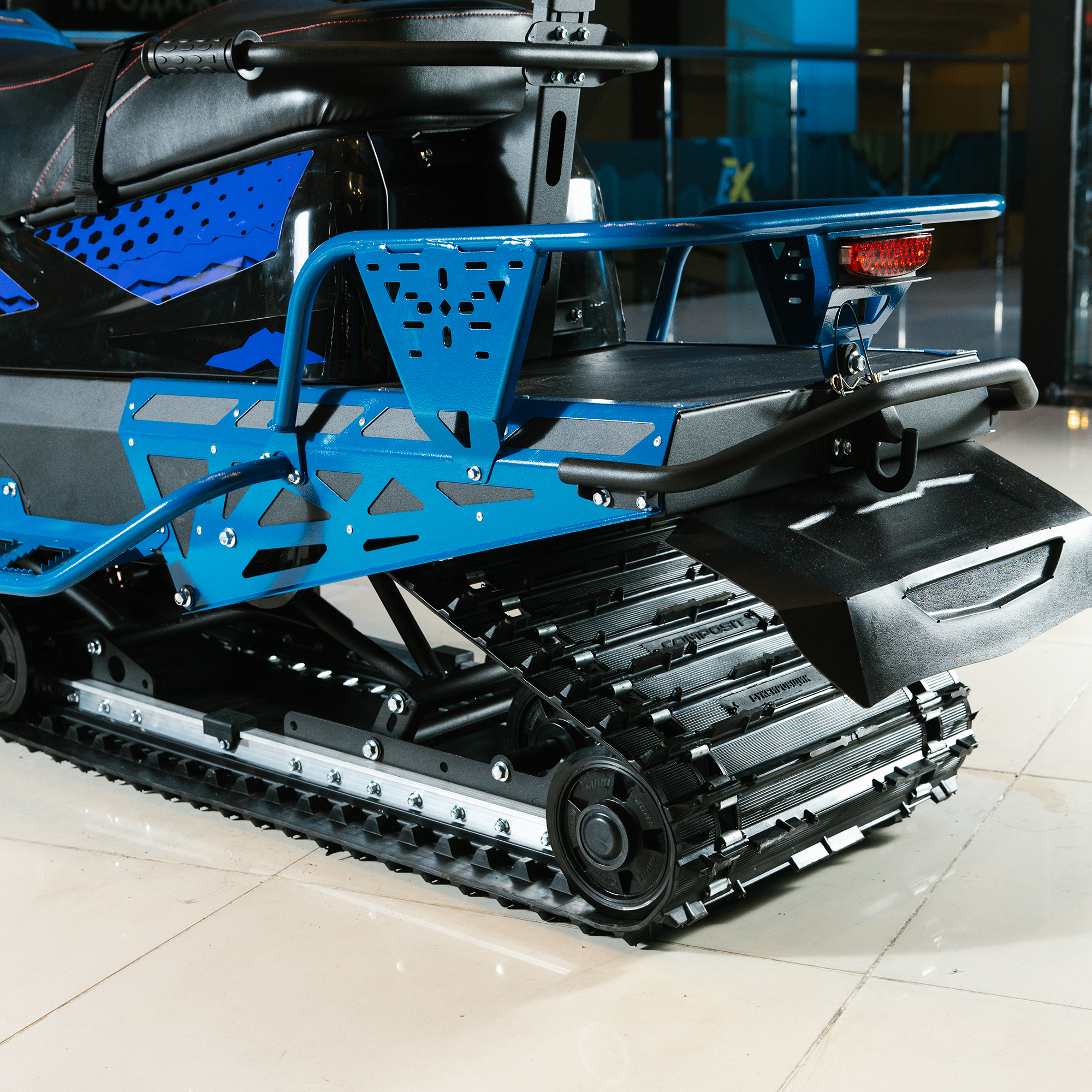 Снегоход комплектуется двухпозиционным подогревом ручек руля и курка газа, розеткой для внешних приборов 12V, электронной многорежимной панелью приборов, системой аварийного глушения двигателя, системой ручного запуска двигателя, гидравлическим дисковым тормозом с функцией стояночного тормоза. Большое комфортное сиденье с подседельным кофром объемом 42 литра.