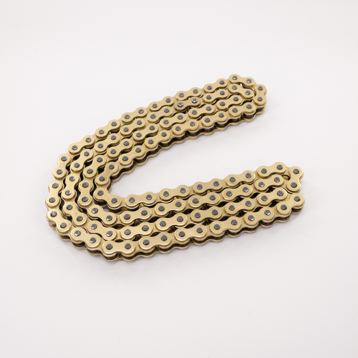Эта мотоциклетная цепь эффективно передает мощность от двигателя к заднему колесу байка, обеспечивая плавный и безопасный ход. Она является надежным и долговечным компонентом привода, который гарантирует безопасность и комфорт при езде на большие расстояния.