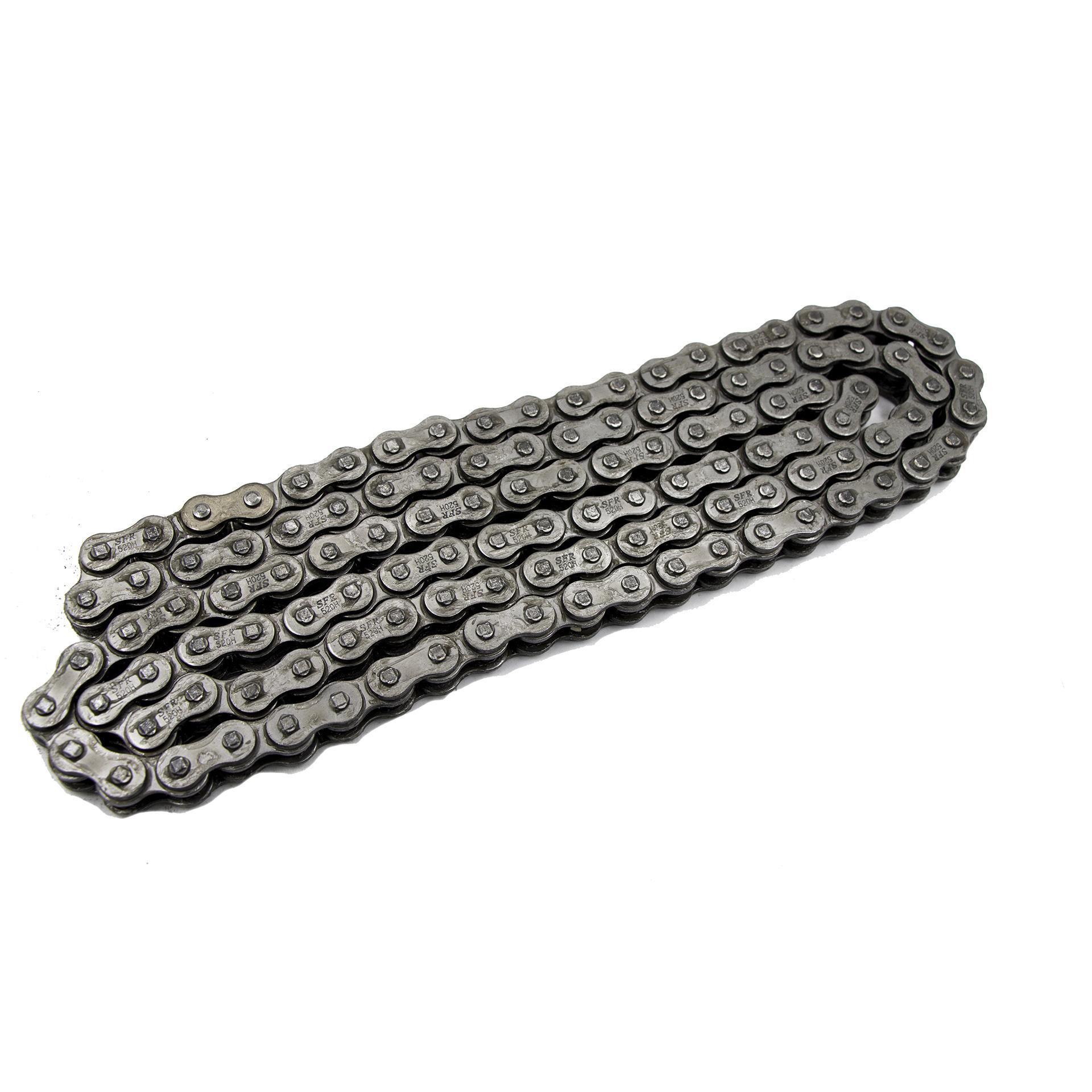 Эта мотоциклетная цепь эффективно передает мощность от двигателя к заднему колесу байка, обеспечивая плавный и безопасный ход. Она является надежным и долговечным компонентом привода, который гарантирует безопасность и комфорт при езде на большие расстояния.